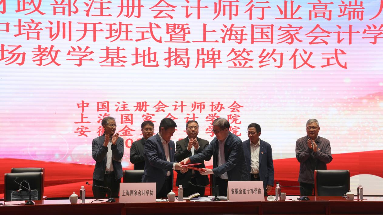 5月13日上午,2024年財政部注冊會計師行業(yè)高端人才聯(lián)合集中培訓(xùn)開班式暨上海國家會計學(xué)院現(xiàn)場教學(xué)基地揭牌簽約儀式在安徽金寨干部學(xué)院(中共金寨縣委黨校)舉行。中國注冊會計師協(xié)會黨委書記、秘書長江湧,上海國家會計學(xué)院黨委書記張鋒,中國注冊會計師協(xié)會黨委委員、副秘書長唐建華,上海國家會計學(xué)院黨委委員、副院長張各興,安徽省財政廳黨組成員、副廳長張豐,六安市委常委、金寨縣委書記汪冬,金寨縣委常委、常務(wù)副縣長汪洪濤出席儀式。